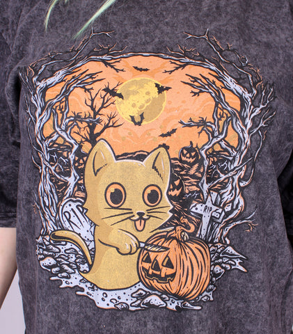 Each year, for Halloween, we release a limited edition tshirt. Our first one features Ghost Cat doing their favourite Halloween tradition. Printed on an acid wash base, each tshirt will have a different finish making them completely unique. They also feature a vintage style print to give that classic washed tshirt feel. Each order comes with an exclusive matching print. Our limited tshirts are never reprinted.
