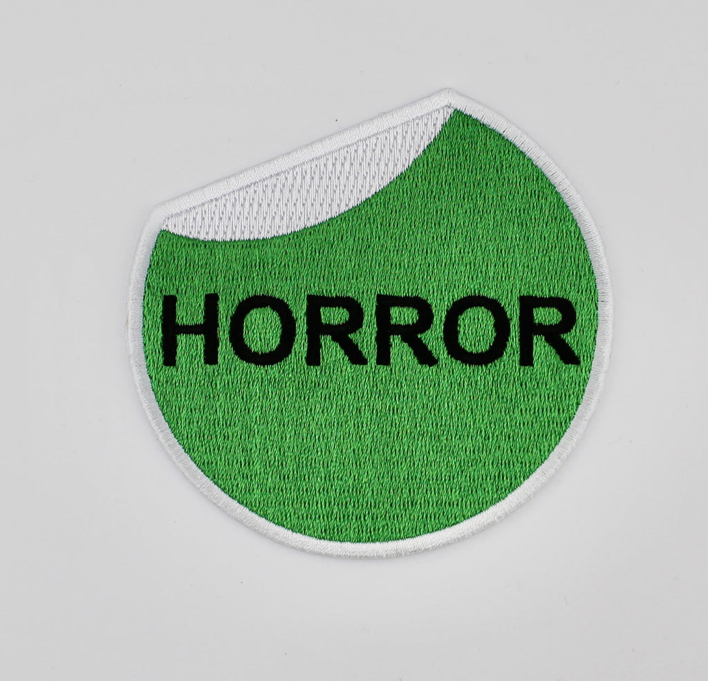 Our Horror sticker logo patch is the perfect accessory to adorn your bags and jackets.